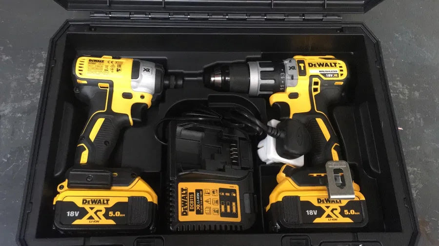 🔥 Putere și durabilitate: Kit DEWALT XR Brushless 18V cu 2 baterii de 5.0Ah 🔋